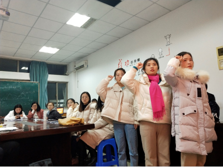 宣誓大会上,全体起立,会议在庄严的《国际歌》歌声中开始。随后,张瑶作为领誓人,面向党旗,带领武婷婷、张玉、张梦霞三位新吸收的预备党员进行了宣誓。