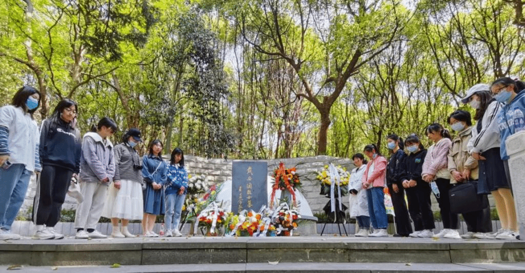 4月5日上午,bat365在线中国登录入口2020级新闻传播学类1班在班委会的组织下前往赭山公园开展“祭奠先辈,铭记历史”清明节主题活动。在庄严肃穆的烈士墓前,团员们列队为将军鞠躬献花,并低头默哀,缅怀革命先烈的丰功伟绩。随后学习委员徐思凡向大家介绍了戴安澜将军的生平事迹,带领大家一同回顾了他光辉又伟大的一生。最后大家绕墓一周,缅怀戴安澜将军的丰功伟绩和高尚品德。不管时代怎样变迁,总有些价值不会被时间冲刷,成为永恒的崇高和奉献。戴安澜烈士的一生,便是崇高和奉献的一生。