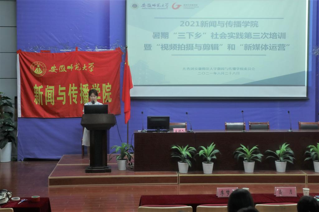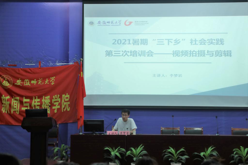 会上,李梦岩老师为各暑期社会实践团队代表进行“视频拍摄与剪辑”培训,他从内容、形式和团队三个方面展开。在内容方面,他强调,要在视频拍摄的过程中注意拍摄资源的配合与联系,在紧抓时代热点的条件下,拍摄出独具特色的视频内容,这样才能做到“独树一帜”、“引人注目”,而通过侧面拍摄衬托出一些小人物或小事物的独特之处,也是拍摄内容方面的一个重要技巧。在形式方面,他指出,在视频拍摄和剪辑的过程当中要做到“三个适应”,即适应视频本身内容的要求、适应剪辑的主客观要求、适应视频的传播率要求。在团队方面,他希望大家可以通力合作,尽力让每个人都发挥出自己最大的优势,同时积极寻求与指导老师的配合,让整个团队的运营流畅高效。