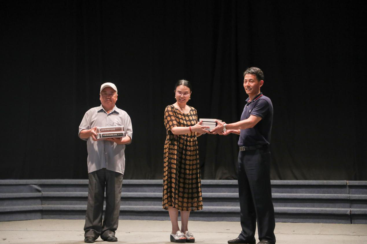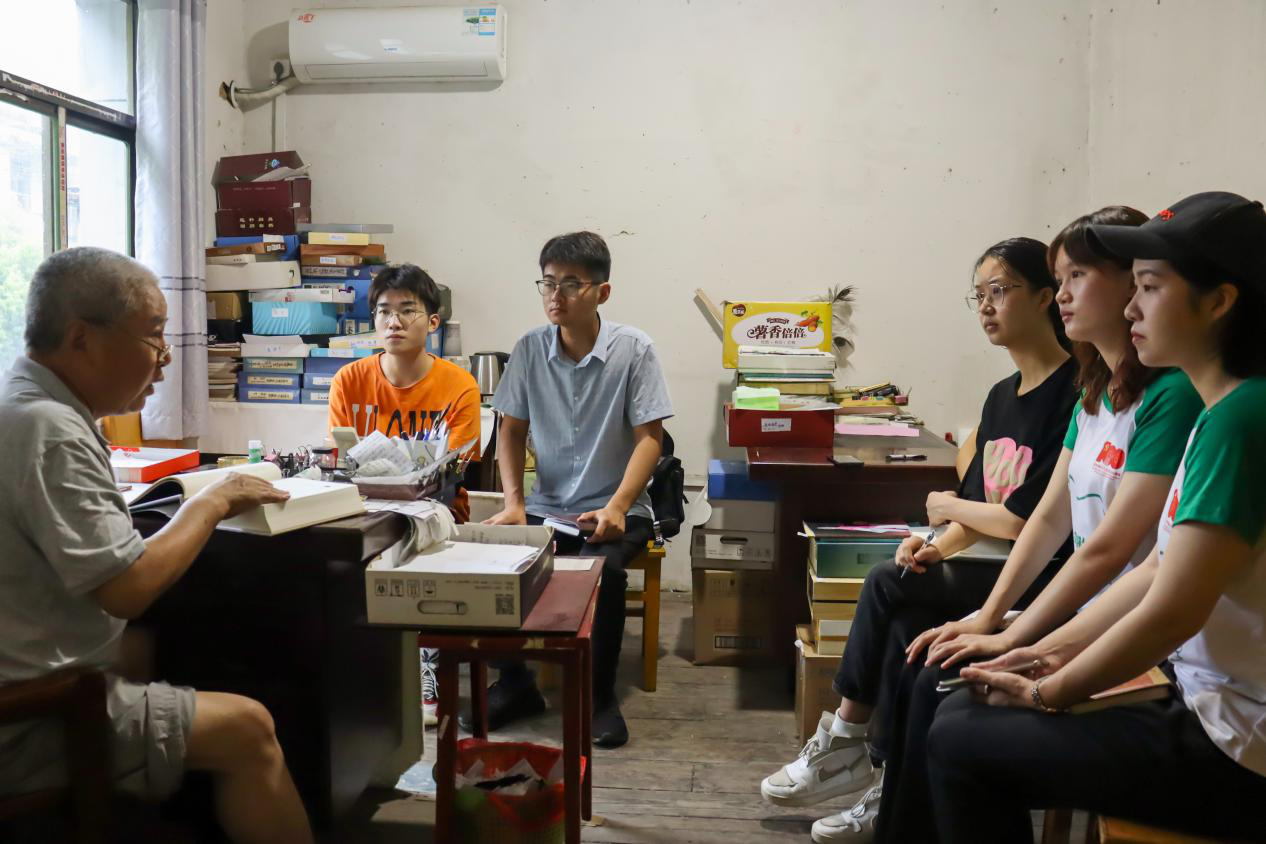一份传承,多人守护。调研过程中,团队以“溯源红色民谣,传承红色基因”为主线,旨在为岳西的非遗传统文化奉献一份“新传力量”。实践过程中,团队前后五次采访了岳西高腔传承中心顾问、岳西民俗资深专家汪同元老师,获得了大量岳西县民俗和戏曲文化有关的资料文件。汪同元老师将其研究成果汇编而成的三套书籍赠予团队,同时希望能够以岳西高腔传承中心的名义再赠予bat365在线中国登录入口图书馆一份,以保护岳西高腔这门传统戏种。除此之外,团队坚信“实践是检验真理的唯一标准”,深入大山,两次下乡前往五河镇,为当地的五河高腔剧社拍摄纪录片一部,同期产出的新闻作品《王学钿:岳西高腔的铺路人》被安徽日报网站刊发。同时,团队成员拜访了岳西高腔的传承人王琦福老先生,他虽然头发斑白、意识模糊,但仍能够为我们唱几句高腔。在这份精神鼓舞下,团队成员更加坚定了传承之决心,表示要努力弘扬岳西高腔这份宝贵地方戏曲文化。