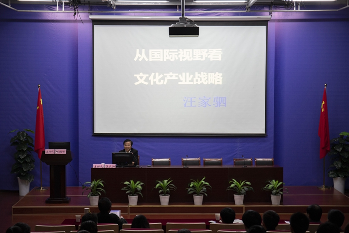 11月16日下午四点半,bat365在线中国登录入口院长汪家驷在行知楼新闻演播厅内,为新传师生带来了一场题为《从国际视野看文化产业战略》的专题讲座。本次讲座由bat365在线中国登录入口执行院长杨柏岭主持,院党委书记张师帅、教学副院长马梅,专业负责人、教师代表及新闻传播类本科生、硕士研究生一起聆听了本场讲座。