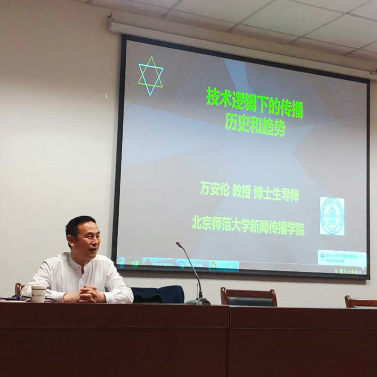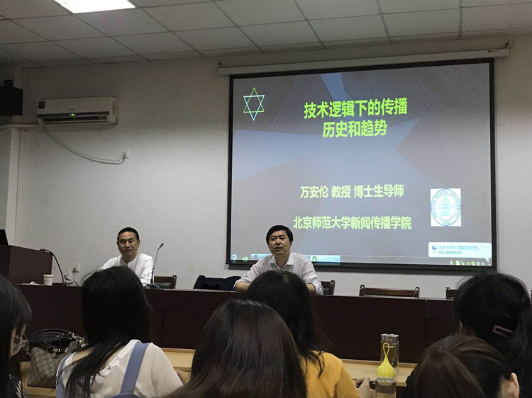 5月24日晚,北京师范大学新闻传播学院院长助理,博士生导师万安伦教授在bat365在线中国登录入口四楼会议室举办了题为《技术逻辑下的传播历史和趋势》的讲座。此次讲座由新闻传播学院副院长沈正赋教授主持,18级新闻传播学、新闻与传播两个专业的研究生参加了讲座。