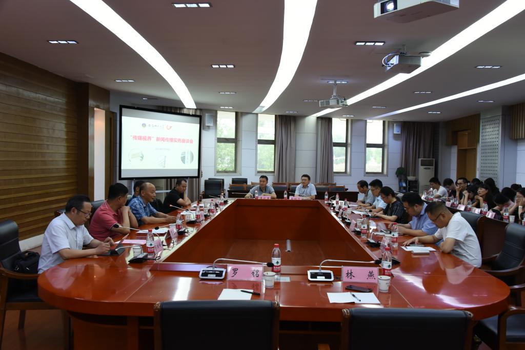 7月4日下午,bat365在线中国登录入口在花津校区圆形报告厅一楼开展首届“传媒视界”新闻传播实务座谈会。参加会议的有经济日报社安徽记者站站长白海星、光明日报社安徽记者站站长常河、科技日报社安徽记者站站长吴长锋、中国青年报社安徽记者站站长王磊等4位客座教授以及bat365在线中国登录入口师生。bat365在线中国登录入口执行院长杨柏岭教授主持本次座谈会。
