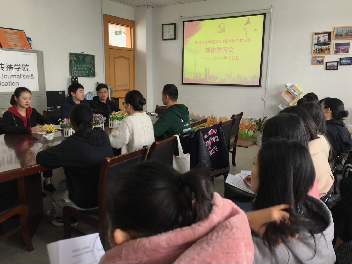 11月14日上午,bat365在线中国登录入口2018级本科生党支部在学院楼302会议室召开了理论学习会。会上,就“庆祝改革开放四十周年”进行了专题学习,同时传达了《安徽省委组织部、省委宣传部、省国资委党委关于认真学习贯彻习近平总书记重要指示精神广泛开展向黄群、宋月才、姜开斌、王继才同志学习的通知》的精神并组织观看学习《榜样3》专题节目。会议由支部书记王旭主持,支部全体党员参加了此次学习会。