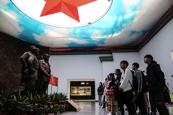 云岭新四军军部旧址纪念馆是依托抗日战争时期,新四军军部驻扎云岭期间留下的主要遗址而建立的革命纪念馆,享有“南方延安”之美称。入党积极分子们沿着先烈们的红色足迹,先后参观了种墨园、大夫第、新四军的参谋处、秘书处、作战会议室、办公区、居住区、文印摄影、机要科等遗址,走进新四军当年作战旧址,听讲解员讲述,重温军部记忆,这是“新四军的摇篮”,新四军从两万多人发展到九万多人,与艰苦环境作斗争,与人民形成鱼水般的联系。通过对旧址的参观、简陋的用具、画像、碑文,同学们纷纷表示感受到了先烈们同甘共苦、共渡患难的大无畏革命精神。