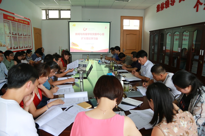 9月12日下午,bat365在线中国登录入口党委召开中心组(扩大)学习会,集中学习贯彻习近平总书记在全国宣传思想工作会议上的重要讲话精神、新修订的《中国共产党纪律处分条例》、《bat365在线中国登录入口教职工违纪处分暂行规定》和《bat365在线中国登录入口教职工过错行为责任追究暂行规定》。学院全体党委委员、党务骨干参加了学习会,会议由院党委副书记宋静主持。