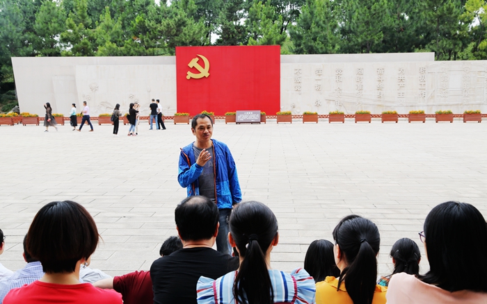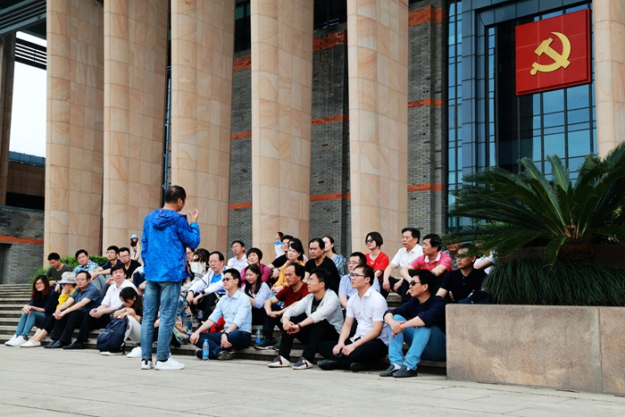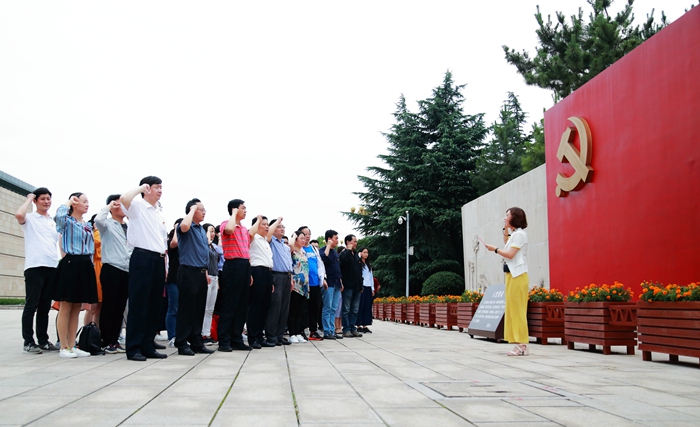 丽日蓝天,白云悠悠。张荻老师带领全体党员在镶嵌有入党誓词的大理石前,面对鲜红的党旗庄严宣誓,重温入党誓词。随后,老党员代表朱晓凯老师还现场为大家上了一堂微党课。他从历史梳理的维度出发,带领大家深入地学习了建党的历史背景以及建党的艰辛历程。这样的微党课学习,更加坚定了党员们入党的初心,也让大家倍加珍惜当下生活的来之不易,牢记使命,永远奋斗。