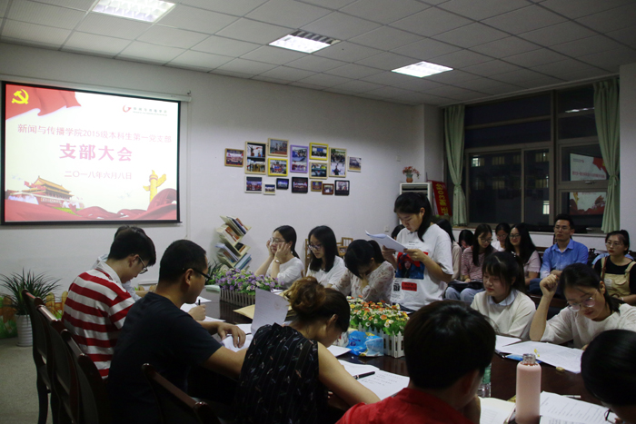 6月8日,bat365在线中国登录入口2015级本科生第一党支部在学院行政楼三楼会议室召开党支部大会,逐个讨论接收预备党员事宜。会议由党支部书记孙文主持,支部党员、入党积极分子代表以及本期8名发展对象共同参加了会议。