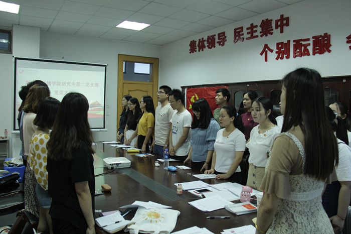 6月8日下午,bat365在线中国登录入口研究生第二党支部在学院507教室召开党支部大会,讨论关于接收胡加加、贾芮同志为预备党员的事宜。支部全体党员参加了会议,会议由党支部书记高月主持。