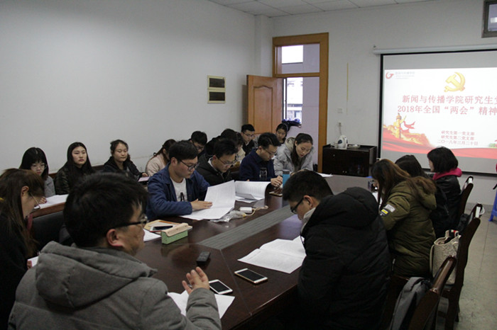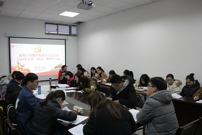 3月20日下午,bat365在线中国登录入口研究生第一、第二党支部在学院505召开全国“两会”精神学习会。学习会由支部书记陈德洋、高月主持,支部全体党员参加了会议。