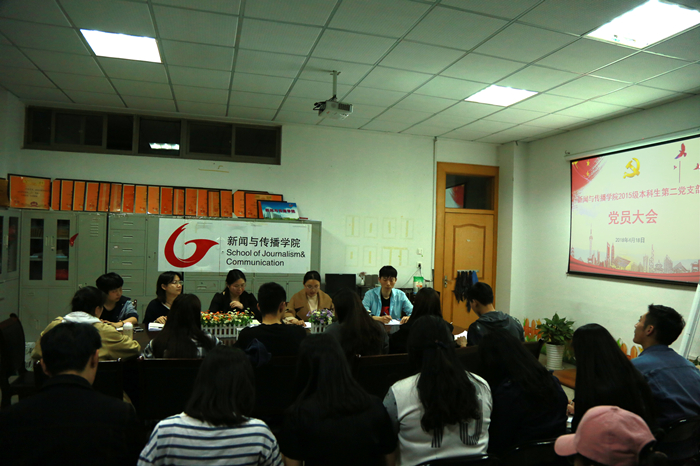 大会在国际歌歌声中拉开序幕。余梦雅首先向全体党员宣读了院党委关于2015级本科生第二党支部正式成立的文件,并向大家介绍了支委会成员。余梦雅说,2015级本科生第二党支部是学院最年轻的党支部,同时也是任务最重的新集体,她以自己入党的故事向大家分享了作为党员应具备的责任和使命,希望全体党员在接下来的学习工作中均能拿出“从被动到主动,从服从到联动,从无知到跟进,从畏难到向前”的积极态度,支委会成员们也相继发言与大家沟通交流。