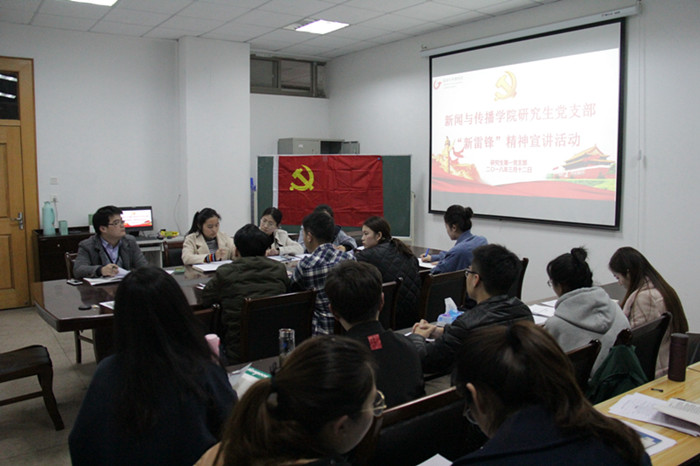 陈德洋做总结发言,认为此次学习很有必要,希望各位同学要增强“四个意识”,坚定“四个自信”,在学习和科研的过程中可以和马克思主义新闻观相结合,做出有历史价值和意义的科研成果。同时要求同学们会后继续深入学习十九届三中全会精神。 l另外,会上还传达《bat365在线中国登录入口2018年度学雷锋活动方案》的通知并讨论了支部具体的活动方案。