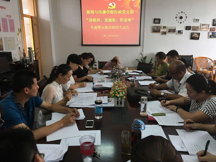 各党支部成员结合理论学习、谈心谈话和查摆反思,在专题组织生活会中进行了充分的交流,积极查找不足,进行党性分析,开展批评与自我批评,直截了当指出问题和不足,真心实意提出改进意见,深入畅谈学习体会。广告与文管教工党支部的胡靖老师结合习近平总书记“7.26”讲话,谈了自己的学习体会。行政党支部的周伍老师结合“陈杨周”案谈到这些触目惊心的违法案件就发生在自己身边,不能将“讲重作”专题警示教育当做是领导干部的事,更不应有与己无关、不以为然的模糊认识,每个党员都应从严要求自己,发挥党员先锋模范作用,为严肃党内政治生活、建设正气充盈的党内政治文化、净化优化政治生态作出自己的努力。2015级本科生党支部的陈建军同学结合支部实际情况从支部活动形式不够多样化、新老党员间缺乏交流等方面谈了自己的思考。