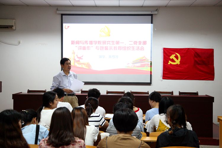 9月13日,bat365在线中国登录入口研究生第一、第二党支部在学院四楼会议室召开了“讲重作”专题警示教育组织生活会,副院长沈正赋作为指导老师出席了会议,会议由第一支部书记朱罗莎老师主持,支部党员参加了会议。此次会议主要内容是支部理论学习、“讲重作”专题警示教育专题组织生活会和“做表率,我们怎么办”专题研讨会。
