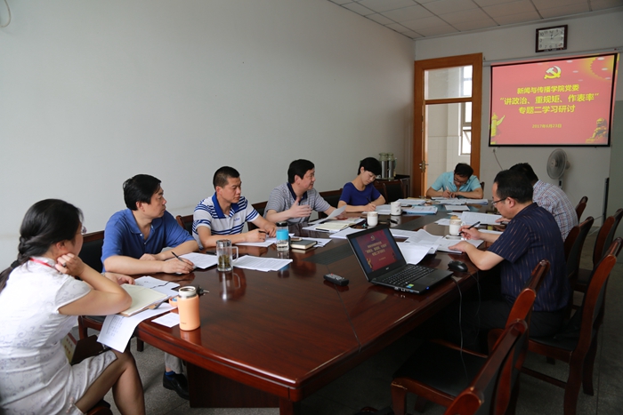 学习会后,班子成员围绕“讲政治、重规矩、作表率”与落实部校共建和思政会议精神的关系、全国高校思想政治工作主要精神、部校共建的主要目标与任务、马克思主义新闻观及马克思主义新闻人才的主要内涵、立足本职岗位落实部校共建和思政会议精神的主要理念、举措与成等内容展开了学习讨论,领导班子成员逐一发言。执行院长杨柏岭结合学院工作实际,指出bat365在线中国登录入口作为首批十所全国试点部校共建新闻学院之一,讲政治重规矩作表率,落实到我们学院的工作就是要做好部校共建工作和按照思政会议精神教书育人。落实部校共建和思政会议精神是讲政治重规矩作表率的必然要求,要在落实部校共建的各项工作中和按照思政会议精神教书育人的过程中讲政治重规矩作表率。学院培养的马克思主义新闻人才应该政治坚定、业务精湛、作风优良、党和人民放心。他提出,学院要强化“人才是第一资源”意识,以“人品、特长、贡献”为人才标准,树立以发展为导向的价值观。