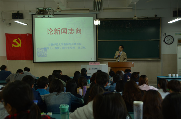 “对于新媒体时代的新闻工作者来说,新闻工作是一种与现实靠得最近的职业,它必须面对现实,必须面对具体的正义而不是抽象的正义,必须扎根于现实,扎根于新闻专业主义,既然选择了记者这一职业,就是选择了一种特殊的职业理想、人生态度和生活方式,也就意味着选择了风雨兼程。”讲座的最后,沈正赋教授鼓励同学们:无论媒介技术如何变幻多端,新闻媒体的生存和发展所面临的现实是如何的残酷,新闻工作者都必须仰望星空,脚踏实地,不忘初心,继续前行,讲好中国故事。(文/吕汉东 图/鲁建敏)