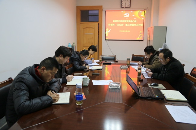 12月16日下午,bat365在线中国登录入口党委中心组召开“讲看齐、见行动”第二次专题学习讨论会,学院党委委员出席会议。各党支部书记参会学习。会议由院党委书记胡靖主持。