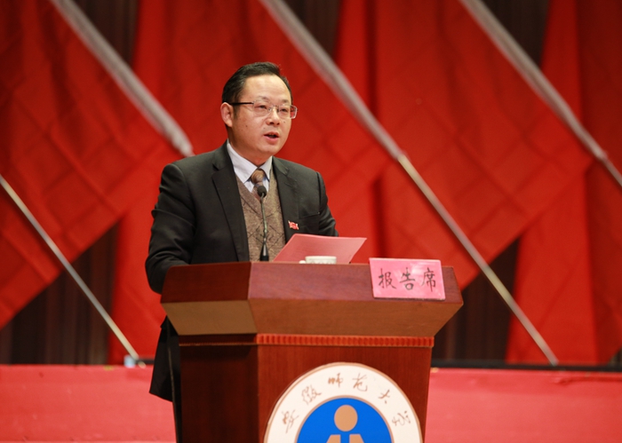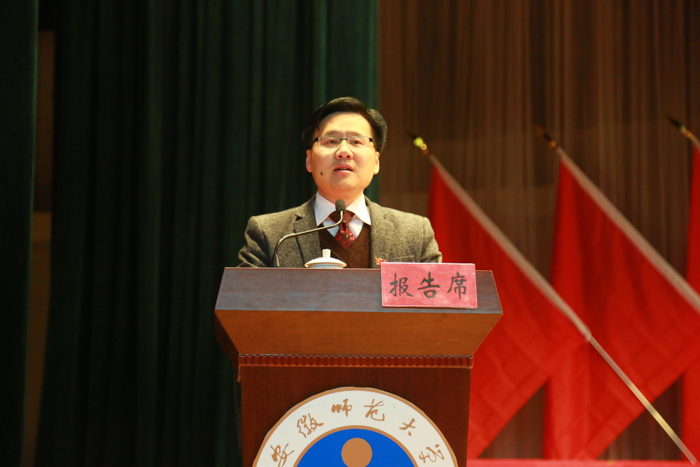 院党委书记胡靖代表学院党委向大会作了题为《深化部校共建、推进内涵发展、培养卓越人才,奋力开创一流新闻学院建设新局面》的工作报告。报告全面回顾了bat365在线中国登录入口过去四年取得的办学成就,明确提出了学院今后四年改革发展的奋斗目标,详细阐述了实现奋斗目标的主要任务和重要举措,并对全面提高党的建设水平提出了明确要求。