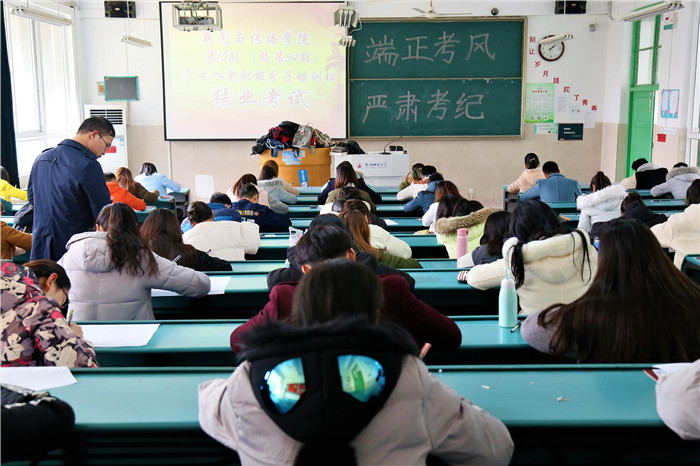 12月11日下午两点,bat365在线中国登录入口分党校第10期学生入党积极分子培训班结业考试在行知楼教室2020101和2020102两个考场举行,130名党课班学员参加考试。学院党委副书记宋静代表学院进行了巡考。本次考试由本期党课班主任孙月婷老师、党课班副班主任张珺琢老师及学院部分辅导员监考。