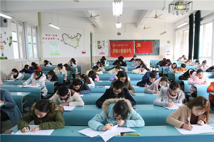 考试前,学员们在签到表上签到后对号入座,监考老师强调了考场纪律并提醒同学们仔细审题。下午两点,考试正式开始。在整场考试中,监考老师认真细致监考,学员们专心致志答题,两个考场考场纪律良好,秩序井然。本次考试内容涉及党史党情、党风党纪,也联系时政,围绕习近平系列讲话,结合专业学习和学院的马克思主义新闻观教育对同学们进入入党积极分子培训班以来的所学所思所悟进行了考察。本次结业考试不仅是对学员关于党的理论学习成果的检验,更是对向党靠拢的态度以及入党初衷的考验。
