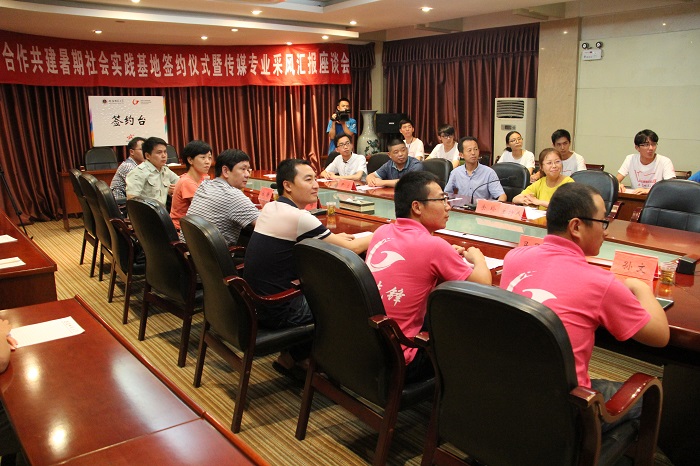 会上,全体人员一同观看了《传媒素养普及培训班宣传片》以及纪录片《洪灾中的战地记者》。仪式最后,实践团队师生和领导合影留念,至此此次签约仪式圆满落下帷幕。(文/范栩铜 图/金恩惠)