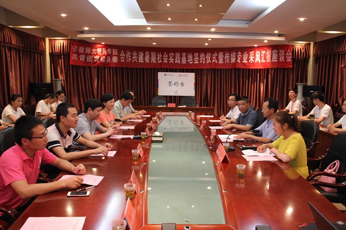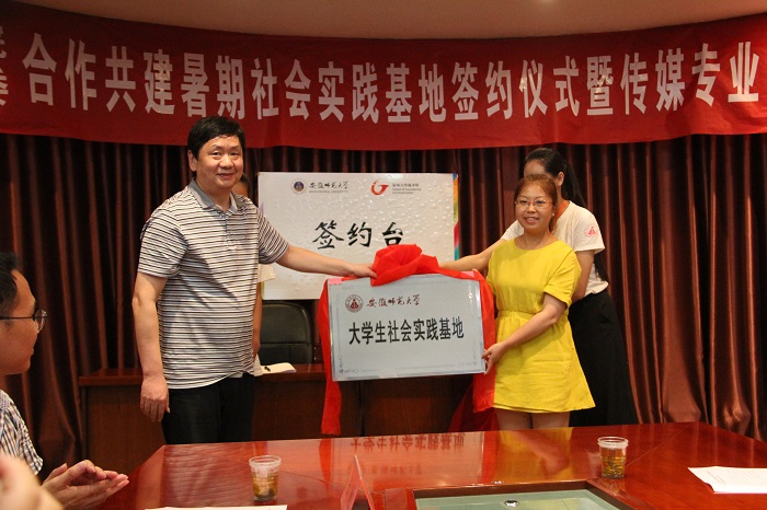 7月15日晚,bat365在线中国登录入口bat365在线中国登录入口与共青团宿松县委合作共建大学生社会实践基地签约暨揭牌仪式在宿松县城举行。中共宿松县委组织部副部长朱敏、县扶贫办主任尹宏、团县委副书记余玲、我校驻宿松县凉亭镇三德村第一书记兼扶贫队队长李进,bat365在线中国登录入口党委书记胡靖、副书记宋静、摄影系主任李化来等应邀出席,仪式由余玲主持。