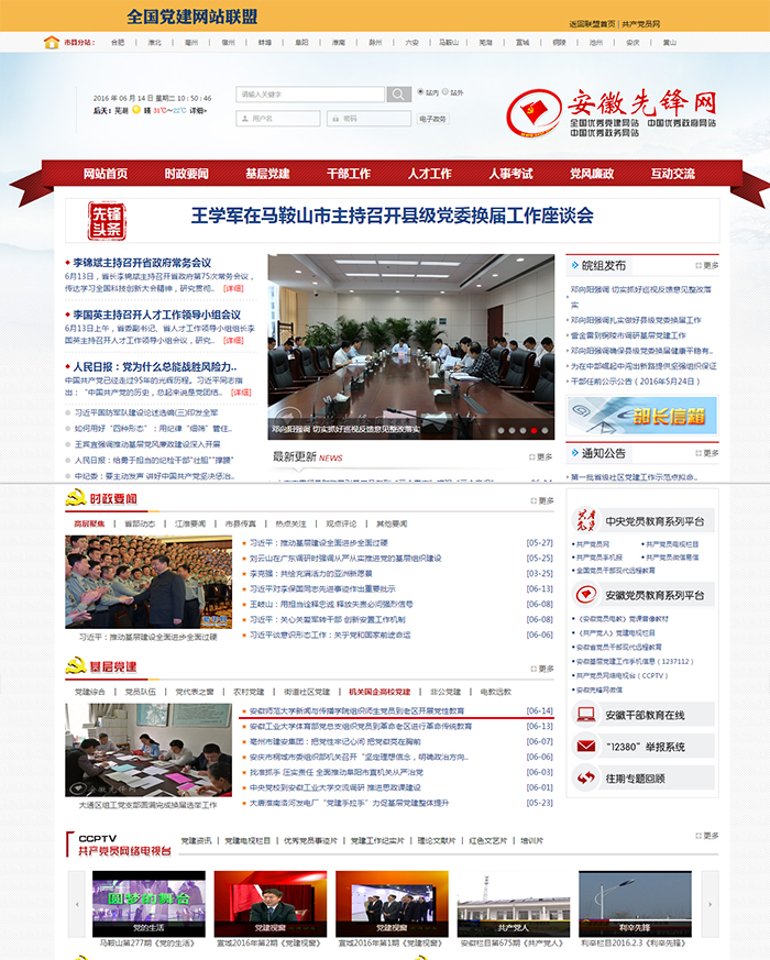 6月14日,安徽先锋网《基层党建》栏目刊发bat365在线中国登录入口到革命老区开展党性教育新闻稿。
