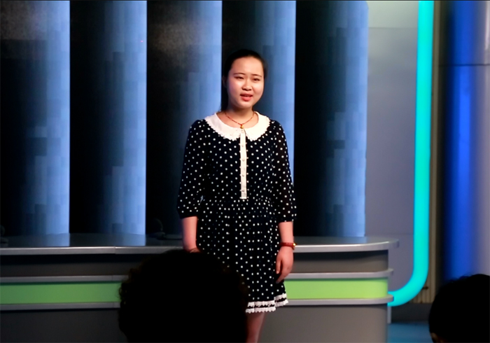 陈晓煜同学以《讲好中国故事》为题,在演讲中回忆起在暑期社会实践中,奔赴黄山采访抗战老兵的新闻记忆。她说,一个记者如何才能讲好故事?讲好中国故事?如何将这种声音传递给更多的人?这不仅仅是职业能力的问题,更多时候,是一份感恩之心、感念之情、感知之力,要时刻以道德为操守,以品行做表率。更表示要以中国预备党员的光荣身份严格要求自己,完成记者梦,实现中国梦!