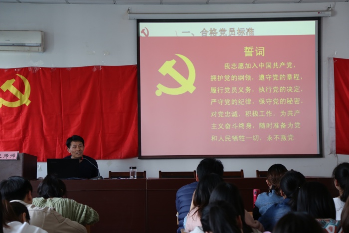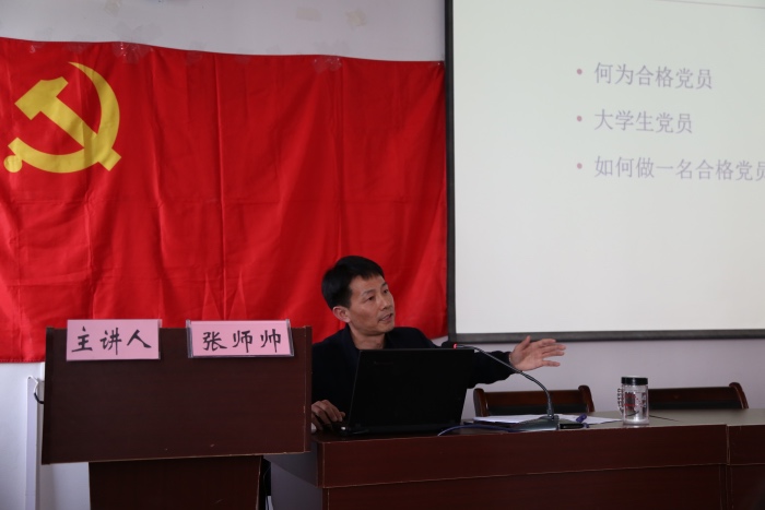 4月13日下午,bat365在线中国登录入口第七期学生党员培训班在学院楼会议室开展理论学习的第六讲,院党委书记张师帅担任本次党课主讲人。bat365在线中国登录入口第七期党员培训班全体学生参加了本次党课。