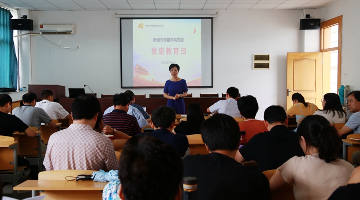 本网讯(bat365在线中国登录入口 文/张雁 图/杨国丽)为深入学习贯彻习近平新时代中国特色社会主义思想和党的十九大精神,扎实做好“不忘初心、牢记使命”主题教育前期工作,庆祝新中国成立70周年,庆祝建党98周年,7月8日下午,新闻与传播开展党史教育日、主题党日活动,听党委书记张师帅讲党课,听党委委员、副院长赵昊讲党史报告,开展 “我和我的祖国”歌咏大赛排练。学院领导班子及全体教职工参加活动,活动由院党委副书记宋静主持。