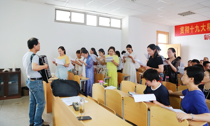 “我们都是神枪手,每一颗子弹消灭一个敌人……”,教职工们在深入了解了《游击队之歌》的创作背景和抗战历史后,排练的歌声更加激情昂扬,伴随激昂的旋律仿佛又回到了那个战火纷飞的年代,看到无数仁人志士为了民族独立、人民解放、国家富强抛头颅、洒热血,正是他们的英勇奋斗才有了我们现在的美好生活。教职工们纷纷表示要认真排练,以此表达对党和祖国的无限热爱和崇高敬意。