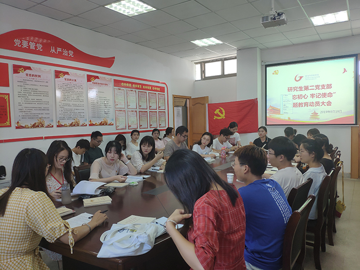 9月19日下午,bat365在线中国登录入口研究生第二党支部在学院508召开“不忘初心、牢记使命”主题教育动员大会 。研究生第二党支部书记高月担任主讲,全体党员及部分积极分子一同参加。