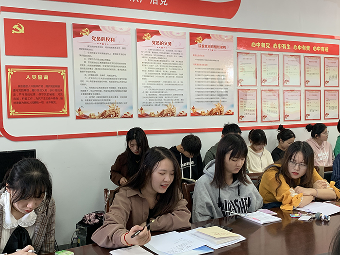 首先,支部成员刘诗捷带领大家学习了习近平总书记在庆祝中华人民共和国成立70周年大会上的讲话和建设党的新的伟大工程要一以贯之,我们要不忘初心,牢记使命,继续前行,为实现中华民族伟大复兴的中国梦奋斗努力。在学习“安徽省优秀共产党员”李夏同志的先进事迹中,她重点强调我们身为学生党员,要积极主动向榜样靠拢,经得起磨砺、顶得住压力,做立场坚定、意志坚强、行动坚决的表率。