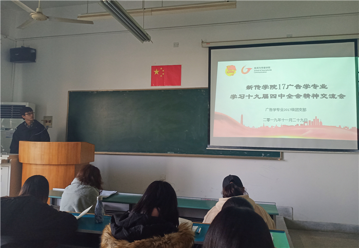 思想是行动的指南,bat365在线中国登录入口各团支部积极响应院团委号召,抓住学习先机,开展党的十九届四中全会精神交流会。19新传大类1班团支书高雅策划组织,班长侯博文作为主讲人,于12月2日晚进行了“关于学习党的十九届四中全会精神”主题团课学习活动,此次学习交流会给大一新生带来了一场精神的洗礼,在充实的课程之余,思想得到升华,为其成为马克思主义新闻观的践行者提供思想指导。2018级中英新闻班全体成员于12月5日晚在学院楼505研究生教室开展了党的十九届四中全会主题教育班会,班会由团支书翟鲁主持,她带领18中英新闻班全体学生共同学习会议精神。本科生的精神交流会如火如荼地开展,研究生的精神学习也不甘落后。11月29日上午,由19级学硕研究生团支部书记林建媛主持的研究生团员大会在教学楼2010103教室召开,全体支部团员参加此次会议。