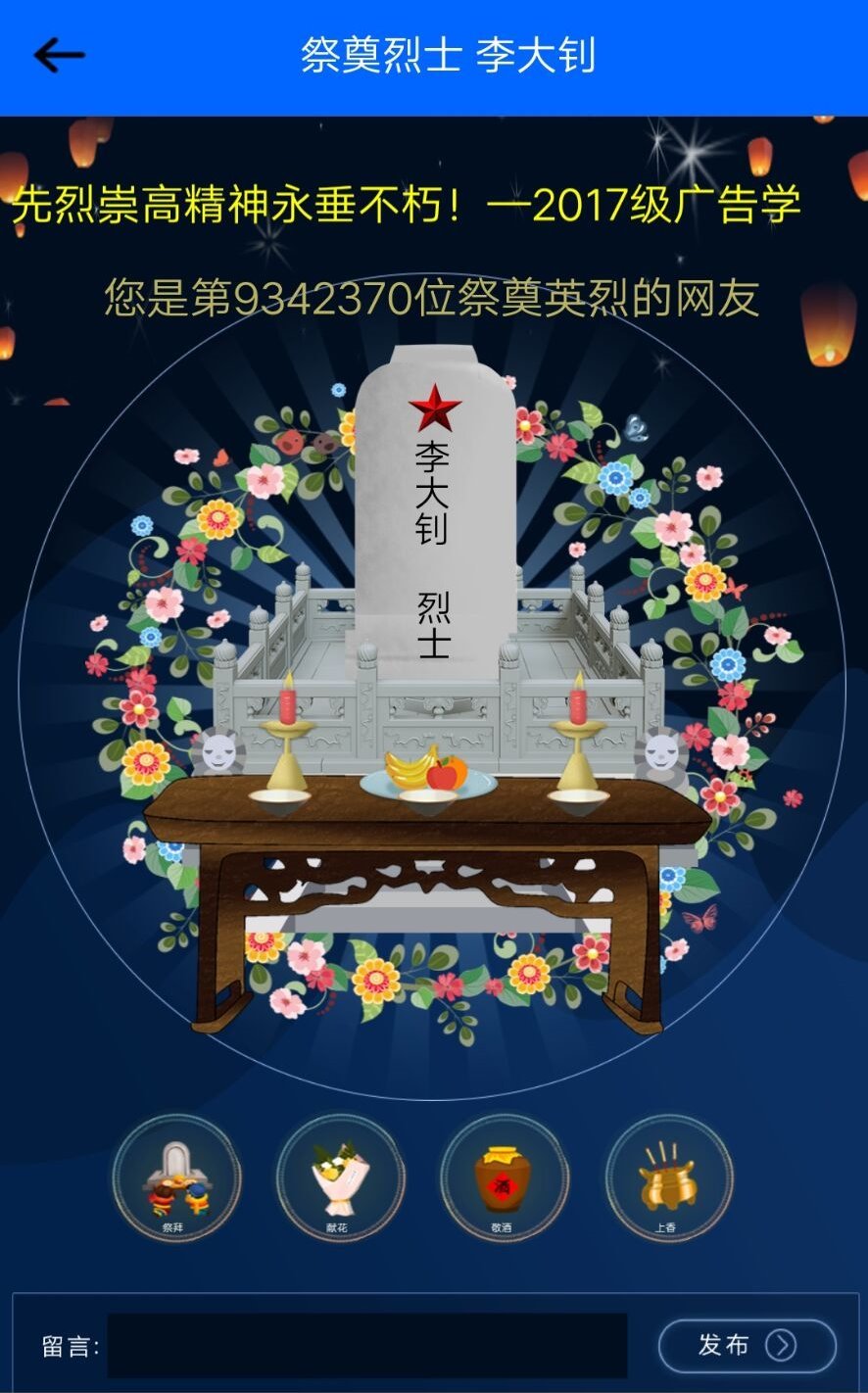 清明兼具自然与人文两大内涵,既是自然节气,也是传统节日。今年中国人民抗日战争暨世界反法西斯战争胜利75周年,中国人民志愿军抗美援朝作战70周年。此次“清明祭英烈,丰碑在我心”活动,让学院师生共同缅怀先烈、线上祭扫英烈、祭扫抗疫一线牺牲的勇士,有利于bat365在线中国登录入口学子争当当代有责任心的大学生,传承英烈精神,用实际行动为实现中华民族伟大复兴中国梦凝聚精神力量,有利于培育并引导大学生践行社会主义核心价值观,传承红色基因,有利于在全社会树立崇尚英雄、缅怀先烈的良好风尚,进一步增强“四个意识”、坚定“四个自信”、做到“两个维护”。