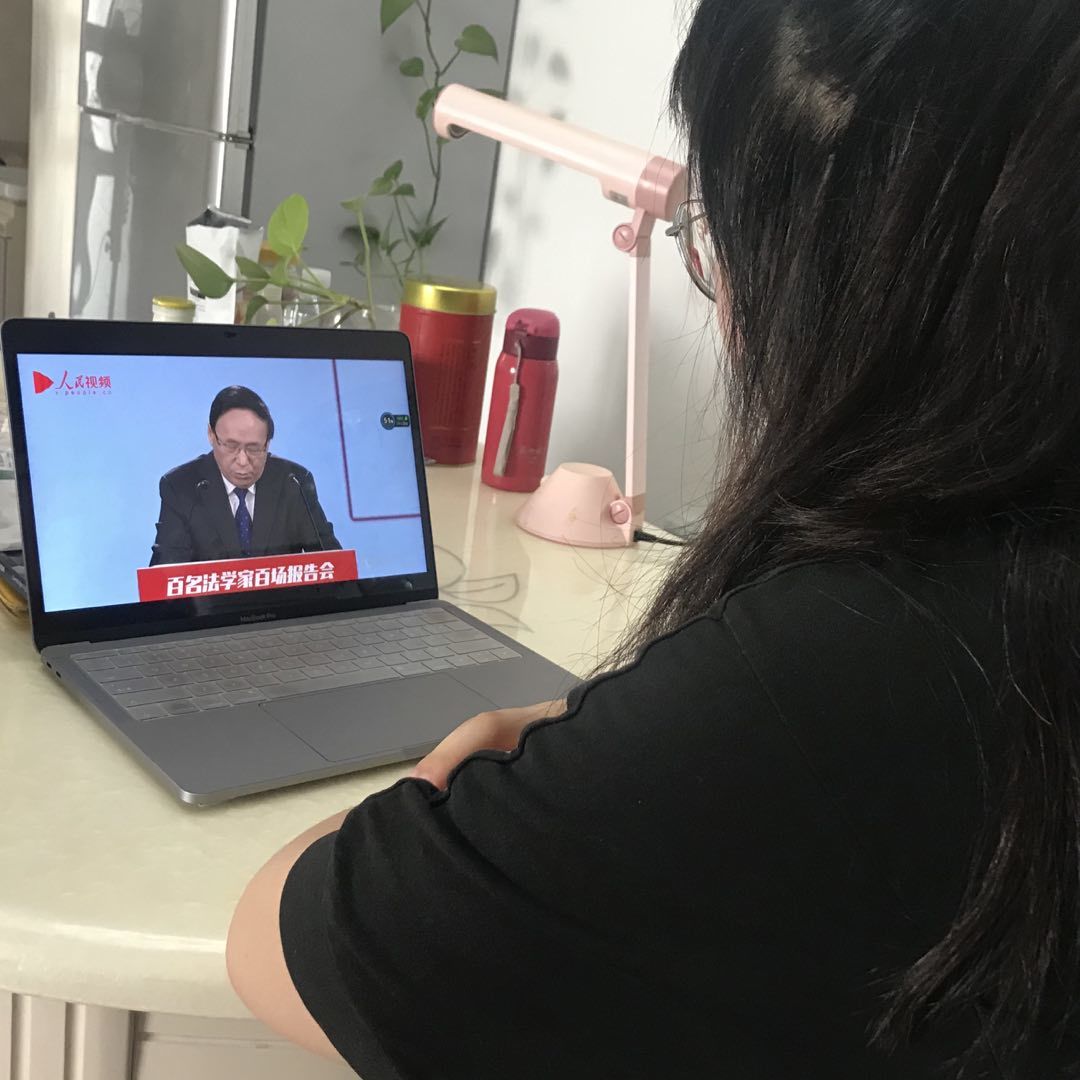 7月29日下午3时,由中央组织部、中央宣传部、中央政法委、教育部、司法部和中国法学会6部门联合举办的2020年“百名法学家百场报告会”法治宣讲活动中央和国家机关专场报告会以网络视频会议形式举办,通过人民网向全国直播。报告会主题为宣传贯彻《中华人民共和国民法典》,邀请中国法学会党组成员、学术委员会主任张文显作专题辅导报告。新传师生积极响应号召,主动观看报告会并在团支部群内展开热烈讨论。