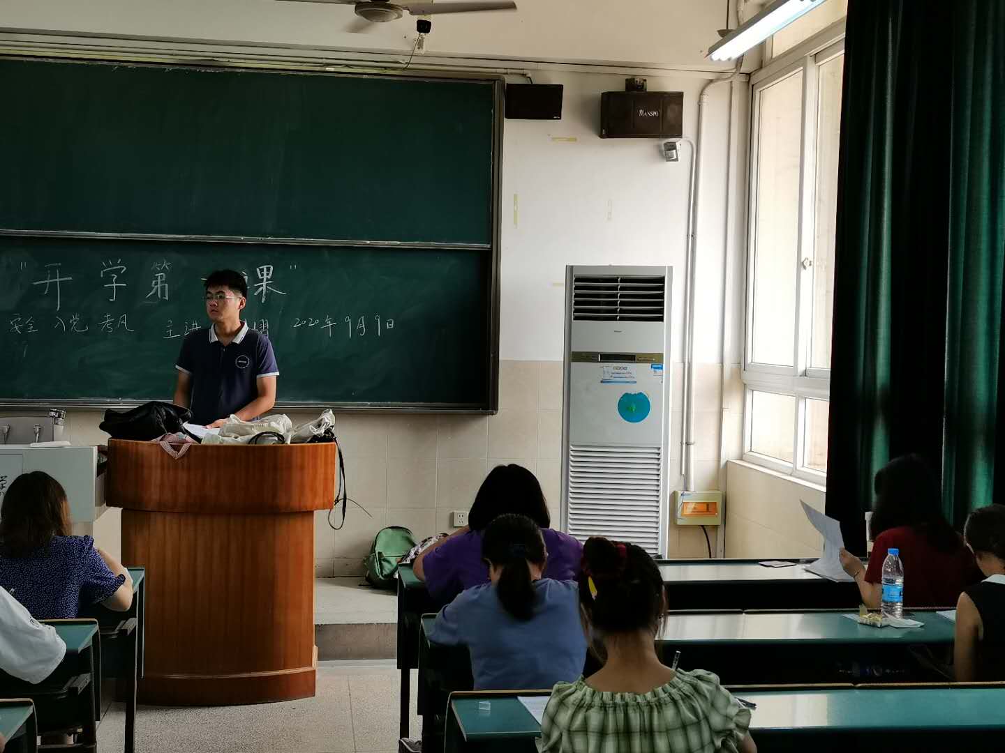 各位专业老师和辅导员老师也都在课堂和班会上强调了疫情期间学校封校有关事宜,提醒同学们不要随意进出校园,遵守学校规定。同时特别强调,寝室长要及时监督同学们注重晨午晚检,时刻保持体温正常与身体健康。提醒大家考试后积极大家调整学习状态,稳步进入新学期的学习。开学第一课是“共抗疫情、爱国力行”系列主题活动的内容之一,旨在帮助同学们在疫情防控时期尽快找回学习状态,树立纪律意识,为同学们的在校安全与身体健康保驾护航。