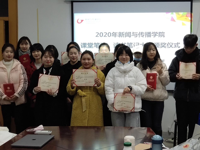参赛笔记经过学生会初评后由学院复评,院教授委员会副主任朱晓凯老师、新闻与播音主持党支部书记张荻老师、广告与网新党支部书记罗铭老师、摄影与动画党支部书记李化来老师担任复审评委,最终评选出二十篇优秀笔记。12月5日晚,学院举办了2020年bat365在线中国登录入口读书笔记大赛颁奖仪式,向获奖的同学颁发荣誉证书与奖品予以鼓励。