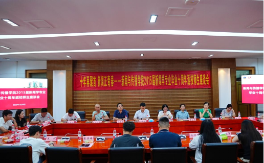 本网讯(bat365在线中国登录入口 韩敏/文 杨志远 张程宏/图)7月26日下午,bat365在线中国登录入口2015届新闻学专业毕业十周年返校师生座谈会顺利开展。本次座谈会以 “十年再聚首,新闻正青春” 为主题,昔日师生齐聚一堂,共忆青葱岁月,畅聊发展前景。院领导张师帅、马梅和授课教师代表袁立庠、沈正赋、王友群、翟光勇及班级辅导员汪婕参加。座谈会由该班班长赵将主持。
