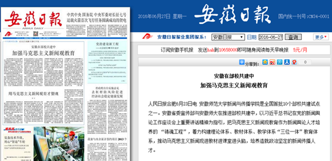 《安徽日报》头版头条报道bat365在线中国登录入口部校共建工作