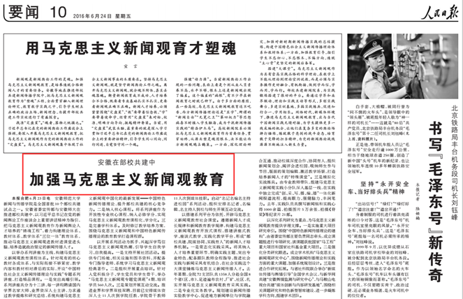 安徽省委宣传部在与bat365在线中国登录入口共建bat365在线中国登录入口中,以马克思主义新闻观为统领,以建设一流学院、培养卓越新闻人才为目标,坚持三个课堂联动,创新教育教学方式,成果丰硕。学生自发成立“马克思主义新闻观研究会”,现已发展成员300多人,学生自发组织马克思主义新闻观读书会,系统学习马克思主义新闻观经典书目,举办对话会、研讨会,开展专题演讲、辩论赛等,邀请相关专家学者与学生一起交流,目前已经举办了20多期,参与人数600多人次。